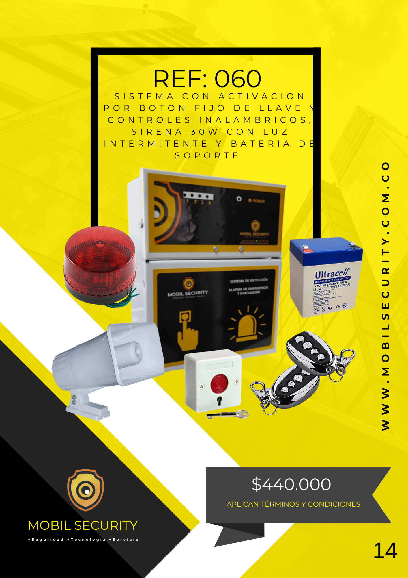✔ Boton de emergencia de llave / o alguno de los 2 Pulsadores Inalámbricos ✔ Sirena de 12Voltios 30 Watt 90dB/Luz Intermitente de 12Voltios Luz 90xMinuto ✔ Fuente de alimentación regulada ✔ Diagrama de instalación (Digital) ✔ Asesoría técnica por MOBIL SECURITY